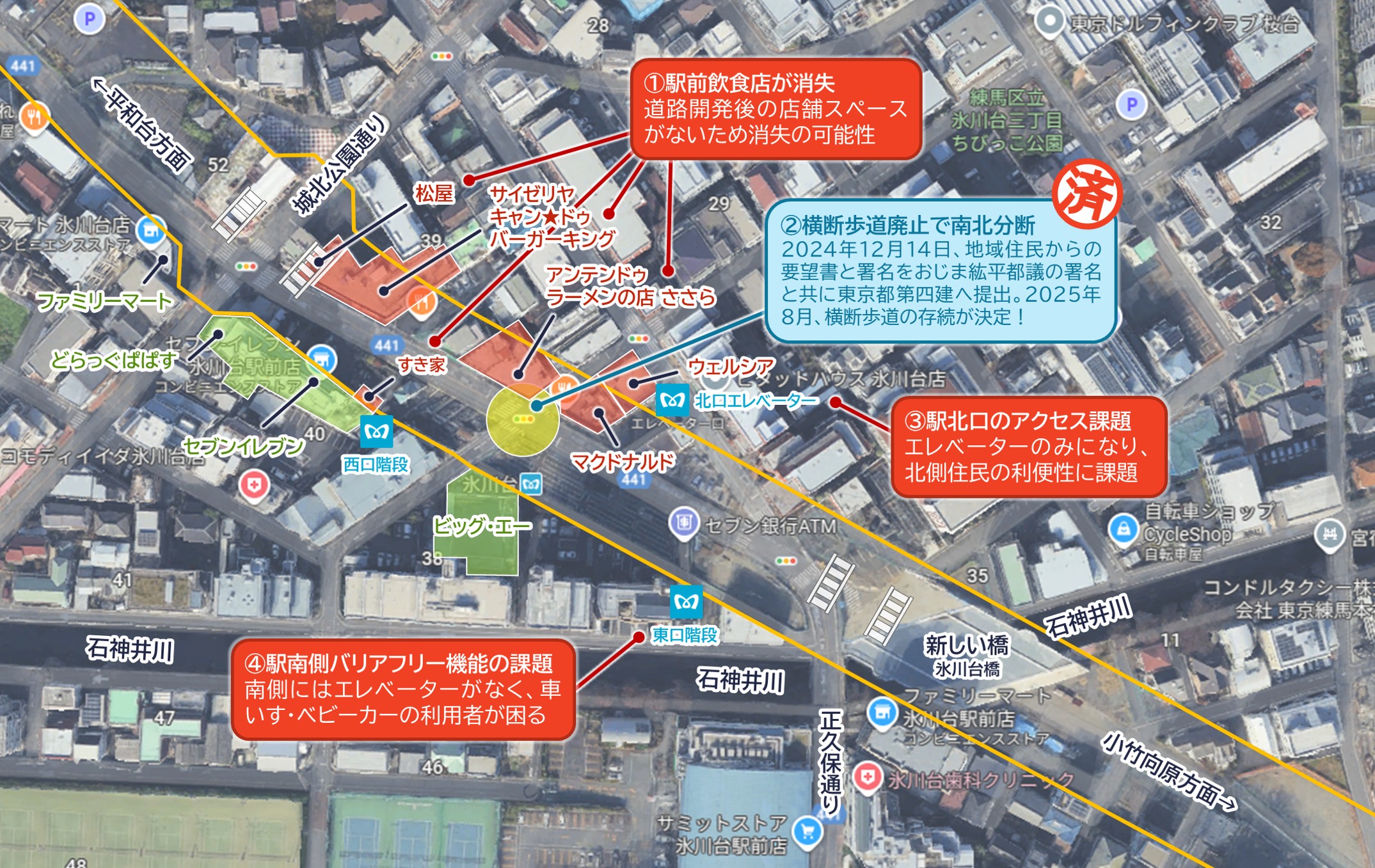 本協議会には、氷川台駅周辺や放射第36号線沿道の町会・商店会のほか、地域の有志住民が参加し、練馬区・東京都第四建設事務所・警視庁などの関係機関との要望・協議・調整を行っていきます。また、都議会・区議会議員との連携も視野に入れながら、地域の声を行政や政治に届けていくための連合体としての役割を担います。